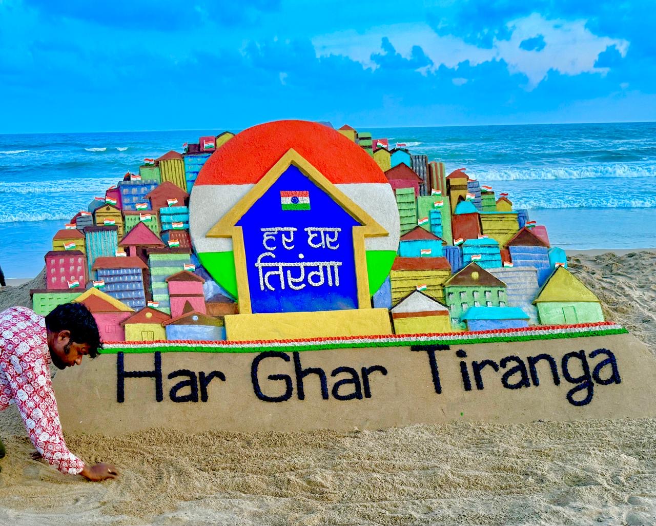 ଦେଶ ୭୯ତମ ସ୍ୱାଧୀନତା ଦିବସ ପାଳନ କରିବାକୁ ପ୍ରସ୍ତୁତ ହେଉଛି । ଏହି ପରିପ୍ରେକ୍ଷୀରେ ପ୍ରଧାନମନ୍ତ୍ରୀ ନରେନ୍ଦ୍ର ମୋଦୀଙ୍କ ଆହ୍ୱାନକ୍ରମେ ୨ରୁ ୧୫ ଅଗଷ୍ଟ ପର୍ଯ୍ୟନ୍ତ ଘରେ ଘରେ ତ୍ରିରଙ୍ଗା ଅଭିଯାନ ଦେଶବ୍ୟାପୀ ଆୟୋଜିତ ହେଉଛି । ପୁରୀ ବେଳାଭୂମିରେ ପଦ୍ମଶ୍ରୀ ପୁରସ୍କାରପ୍ରାପ୍ତ ଅନ୍ତର୍ଜାତୀୟ ଖ୍ୟାତିସମ୍ପନ୍ନ ବାଲୁକା ଶିଳ୍ପୀ ସୁଦର୍ଶନ ପଟ୍ଟନାୟକ ଘରେ ଘରେ ତ୍ରିରଙ୍ଗା ବାର୍ତ୍ତା ଉପରେ ଆଧାରିତ ଏକ ଚିତ୍ତାକର୍ଷକ ବାଲୁକା କଳାକୃତି ନିର୍ମାଣ କରିଛନ୍ତି। ଏହି ବାଲୁକା କଳାରେ ତ୍ରିରଙ୍ଗାକୁ ସମ୍ମାନ ଦେବା ଏବଂ ଏକତା ଓ ଦେଶପ୍ରେମର ନୂତନ ଭାବନାକୁ ପ୍ରସାର କରିବା ପାଇଁ ପ୍ରଧାନମନ୍ତ୍ରୀ ନରେନ୍ଦ୍ର ମୋଦୀଙ୍କ ଦ୍ୱାରା ଦିଆଯାଇଥିବା ଆହ୍ୱାନ ପ୍ରତିଫଳିତ ହୋଇଛି ।