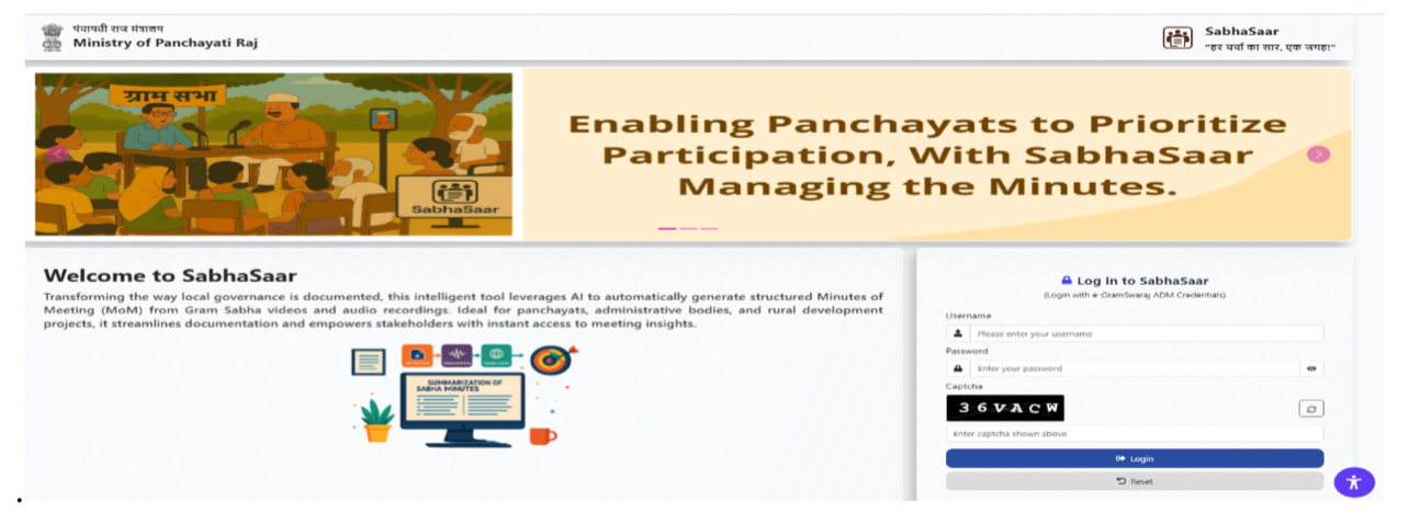 ସଭାସାର କଥିତ ଆଲୋଚନାକୁ ଲିପିବଦ୍ଧ କରିବା, ମୁଖ୍ୟ ନିଷ୍ପତ୍ତି ଓ କାର୍ଯ୍ୟ ବିନ୍ଦୁଗୁଡ଼ିକୁ ଚିହ୍ନଟ କରିବା ଏବଂ ଭଲ ଭାବରେ ପ୍ରସ୍ତୁତ ହୋଇଥିବା ବୈଠକ ବିବରଣୀ ପ୍ରସ୍ତୁତ କରିବା ପାଇଁ ଉନ୍ନତ ଏଆଇ ଓ ନେଚୁରାଲ ଲାଙ୍ଗୁଏଜ୍ ପ୍ରୋସେସିଂ (ଏନଏଲପି) ପ୍ରଯୁକ୍ତି ବ୍ୟବହାର କରେ। ଭାରତ ସରକାରଙ୍କ ଜାତୀୟ ଭାଷା ଅନୁବାଦ ମିଶନ, ‘ଭାଷିନୀ’ ସହିତ ସମନ୍ୱିତ ଏହି ଉପକରଣ ବର୍ତ୍ତମାନ ୧୩ଟି ଭାରତୀୟ ଭାଷାକୁ ସମର୍ଥନ କରୁଛି । ଏହା ଭାଷାଗତ ପୃଷ୍ଠଭୂମିରେ ପଞ୍ଚାୟତ କର୍ତ୍ତୃପକ୍ଷଙ୍କ ପାଇଁ ସମାବେଶୀତା ଏବଂ ସୁଗମତା ସୁନିଶ୍ଚିତ କରେ। ଆଗାମୀ ଦିନରେ ସମର୍ଥିତ ଭାଷା ସଂଖ୍ୟା ମଧ୍ୟ ଧୀରେ ଧୀରେ ବୃଦ୍ଧି ପାଇବାର ସମ୍ଭାବନା ରହିଛି ।