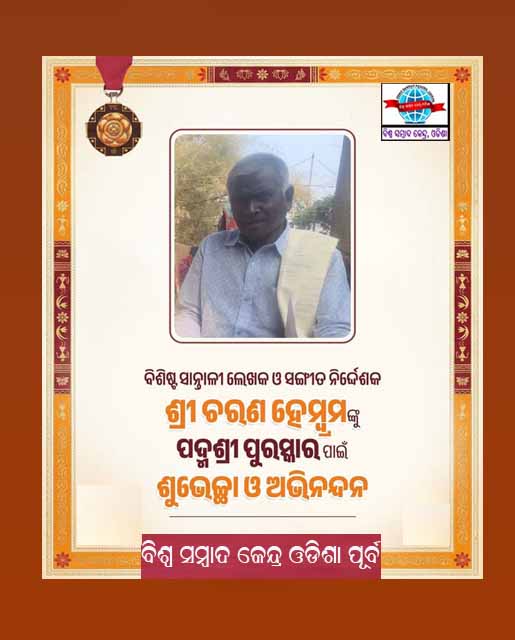 ବିଶିଷ୍ଟ ସାନ୍ତାଳୀ ଲେଖକ ଓ ସଙ୍ଗୀତ ନିର୍ଦ୍ଦେଶକ ଶ୍ରୀ ଚରଣ ହେମ୍ବ୍ରମଙ୍କୁ ପଦ୍ମଶ୍ରୀ ପୁରସ୍କାର ପାଇଁ ଶୁଭେଚ୍ଛା ଓ ଅଭିନନ୍ଦନ ।